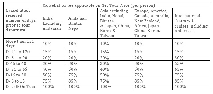 The above cancellation charges include various direct and indirect expenses incurred for preparation and operation of the tour.